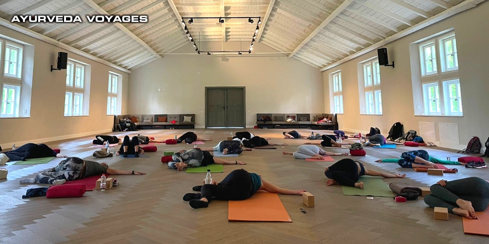 Il y a deux bâtiments pour les chambres Single et Double, 2 petits bâtiments pour quelques appartements, un autre pour le yogashala (un rêve de prof de yoga!) , un pour la cuisine et le restaurant, un pour le vaidyashala (centre de soins), un pour la réception, et plusieurs projets en cours (notament bientôt un centre Vipassana).